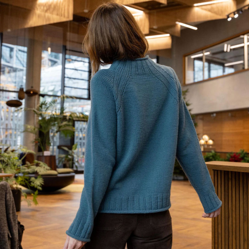 Das Rigmor Tee von PetiteKnit wird auf einer Rundstricknadel von unten nach oben mit Raglanabnahmen gearbeitet. Die Ärmel werden in Runden auf einem Nadelspiel gefertigt. Vor dem Abketten der Maschen am Halsausschnitt wird ein Bündchen im Rippenmuster gestrickt. Das Rigmor Tee besticht durch ein feminines und simples Lochmuster an Rumpf und Ärmeln. Das Lochmusterdiagramm findet sich am Ende der Anleitung.